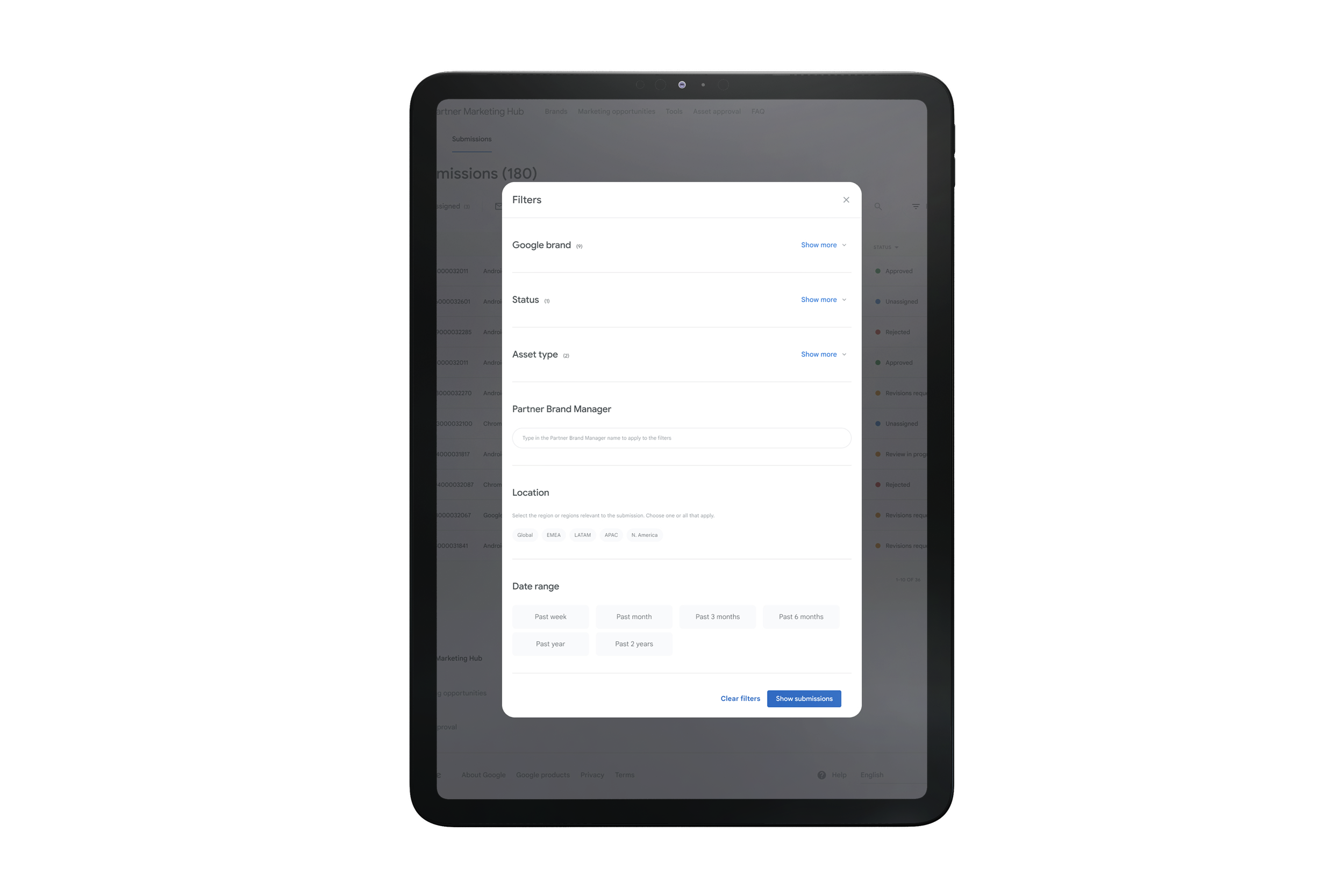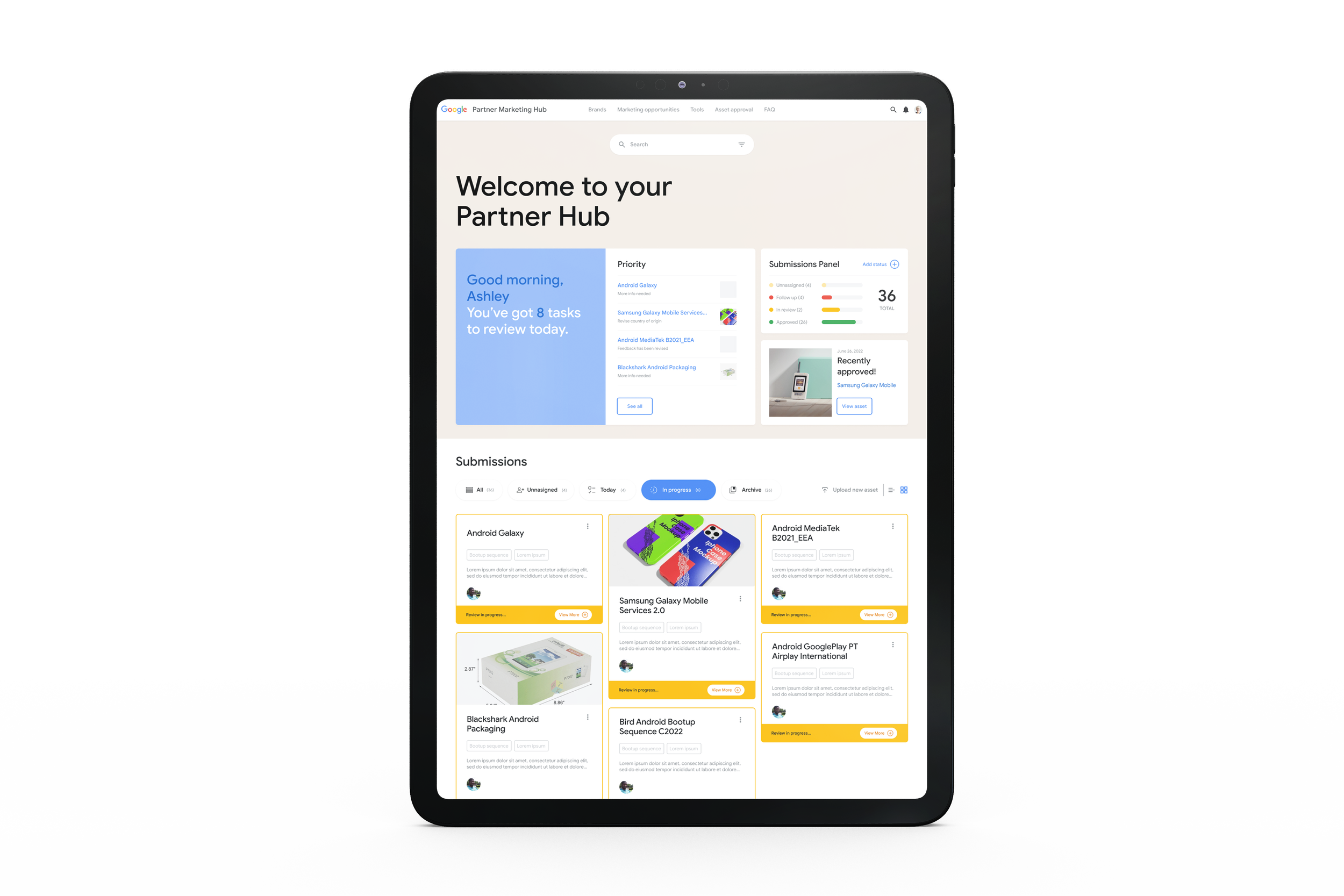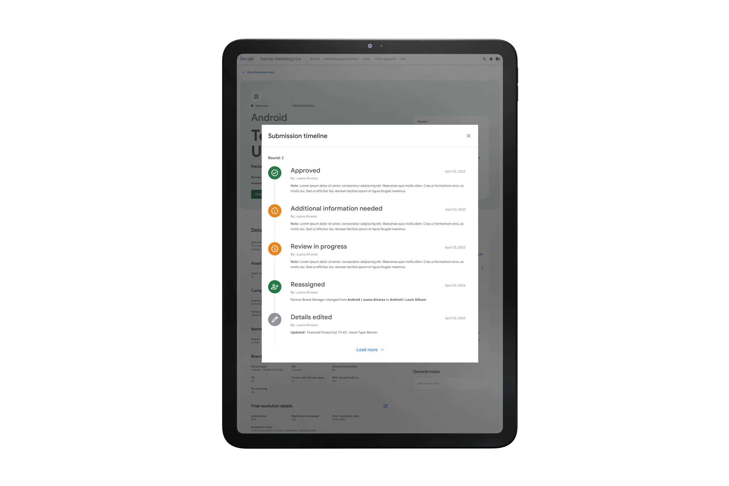 Create a simple experience on PMH where partners can track the current status of all of the assets they’ve submitted for Google brand review and approval.